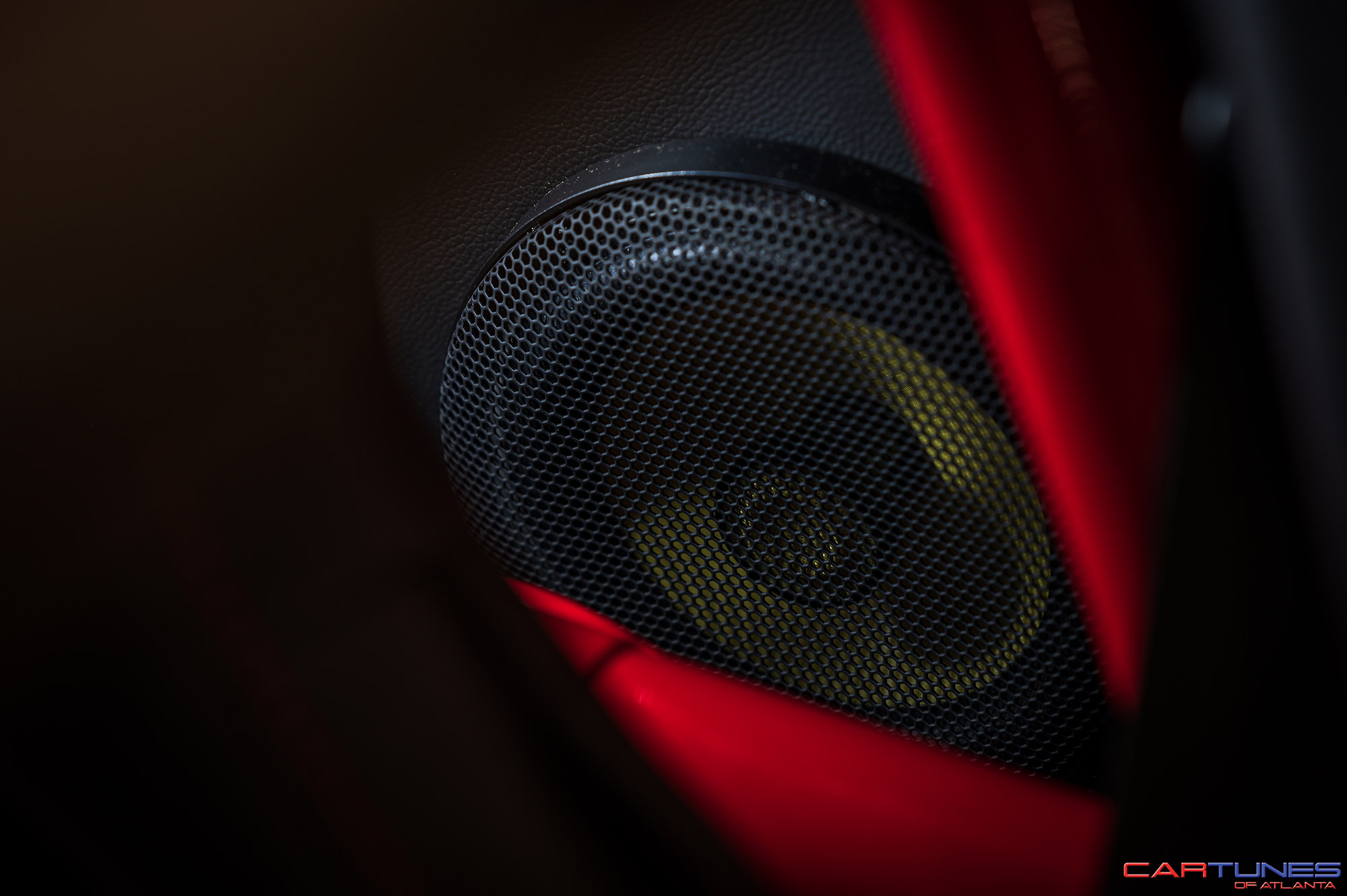 Well look no further! No roll cage will hold us back. We custom fabricated and designed a system specifically designed to mesh with this massive roll cage. The goal is to achieve knock your head off bass in this Shelby GT350R. Two JL Audio 12″ W7 subwoofers right behind the driver’s and passenger’s head provides all the boom. The initial installation involved removing the roll cage and fabricating a massive enclosure inside. Hours of time went into fit and finish in a tight area. The enclosure was then trimmed inside the car and roll-cage reinstalled over the woofers. It’s absolutely beautifully fabricated.